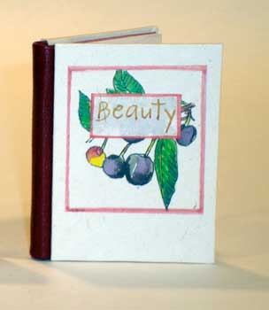 This is an accordion book with 18 pages. The text is a quote by John Muir. The The text was hand drawn in Donna's "Freesans" calligraphic type face. There are 10 full page watercolor illustrations of ripe Sierra berries. This edition was color copied onto handmade paper Peter made specially for the project. The book is case bound with printed paper covers and a red leather spine.