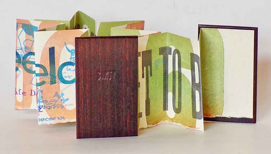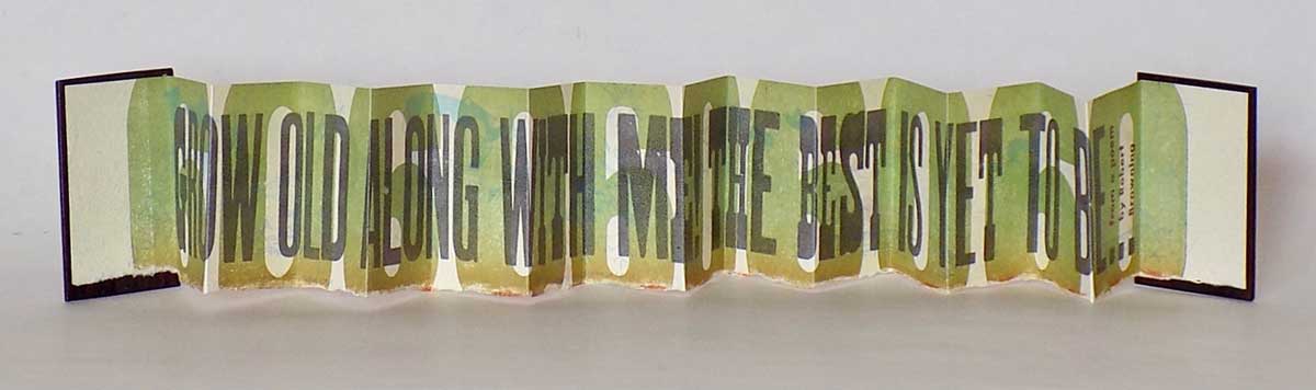 Sixty (2017) Robert Browning. 2 ½ by 1 ½ inches. Accordion, wooden covers, printed with wood type. Made for Donna’s 60th birthday. 60 copies. $60.