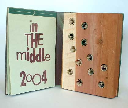 In The Middle. Compiled and edited by Peter and Donna Thomas (2004) 11 1/4 by 8 1/8 inches. 14 pages and 12 scrolls. 24 copies.