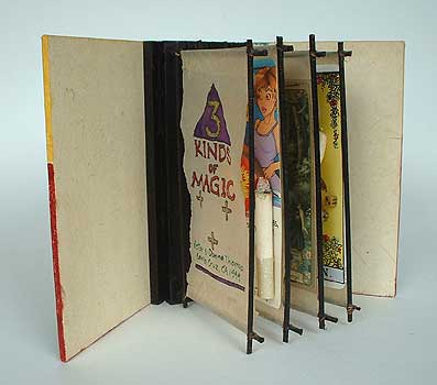 together with little paper hinges. The covers are painted wood, painted by Donna