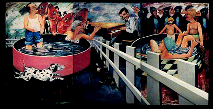 A STRONG FENCE MAKES FOR FRIENDLY NEIGHBORS ! " three 4'x6' ft. canvases/acry. priced at : $20,000.