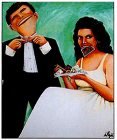 The "ART CONSUMER" painting sold for $10,000 in 2000