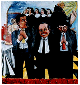 "THREE HOLY BUSINESSMEN" acry/canvas not on strechers 77"x72"